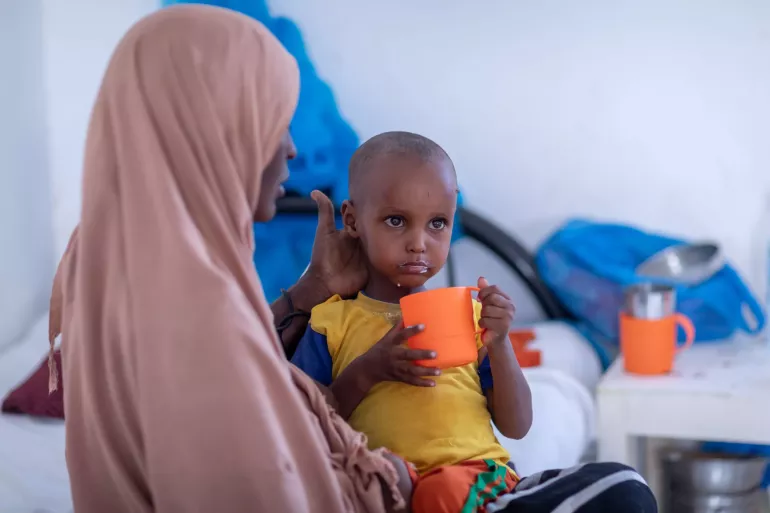 Government budget up health nutrition. Child malnutrition Somalia diaspora send money food packs.